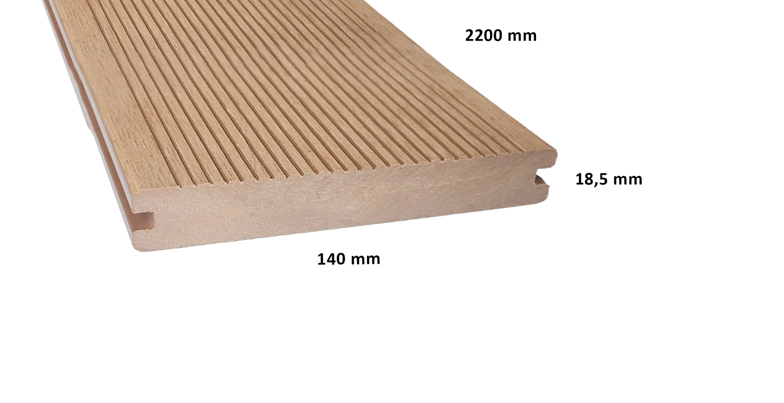 Il decking pieno in WPC, privo di cavità interne, è disponibile in doghe con dimensioni 2200 × 140 × 18,5 mm, dotate di superficie zigrinata e effetto legno antiscivolo. È proposto nel colore Teak. Questa pavimentazione è ideale per la realizzazione di spazi esterni come bordi piscina, patii, terrazze, verande oppure per creare percorsi funzionali all’interno del giardino. Il montaggio avviene tramite un sistema con clips: speciali elementi in acciaio inox vengono fissati sotto le doghe, precedentemente fresate per facilitare l’assemblaggio della struttura. Questo sistema permette un’installazione veloce e assicura una struttura stabile, solida e resistente nel tempo.